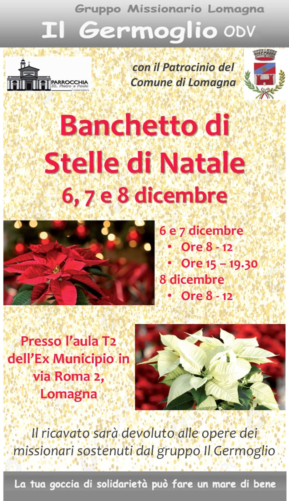 Sabato 6, Domenica 7 e Lunedì 8 dicembre, presso l'aula T2 in Via Roma 2, sarà possibile acquistare le Stelle di Natale il cui ricavato sarà devoluto alle opere dei missionari sostenuti dal gruppo Il Germoglio ODV