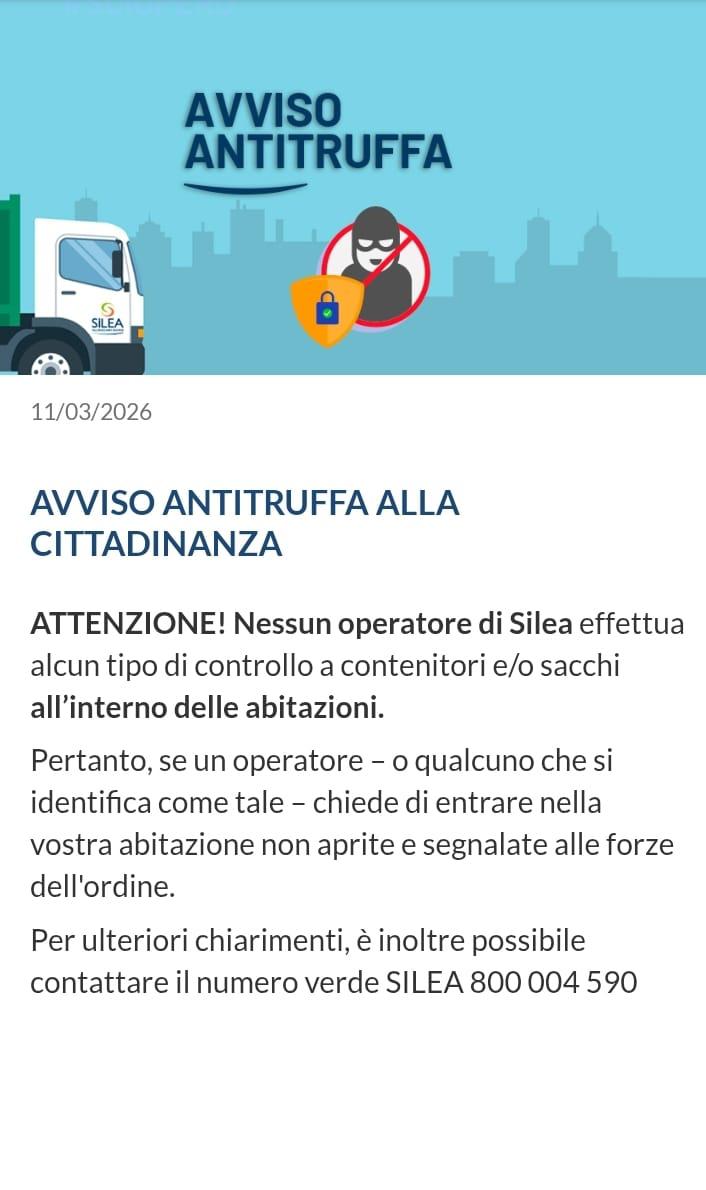 ATTENZIONE! Nessun operatore di Silea effettua alcun tipo di controllo a contenitori e/o sacchi all'interno delle abitazioni.
